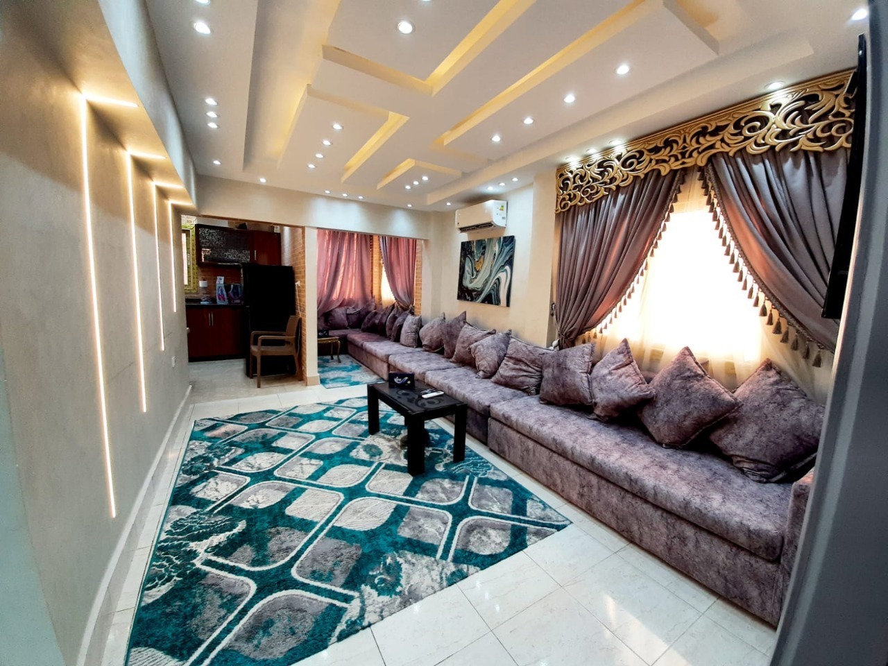 شقه راقيه مفروشه الايجار اليومى او الشهرى بارقى ابراج المهندسين فى شارع شهاب الرئيسى بالمهندسين تشطيب سوبر لوكس غرفتنين و2حمام مدخل فندق امن وحراسه 24ساعه قريبه جدا جميع الخدمات والكفيهات اليوم