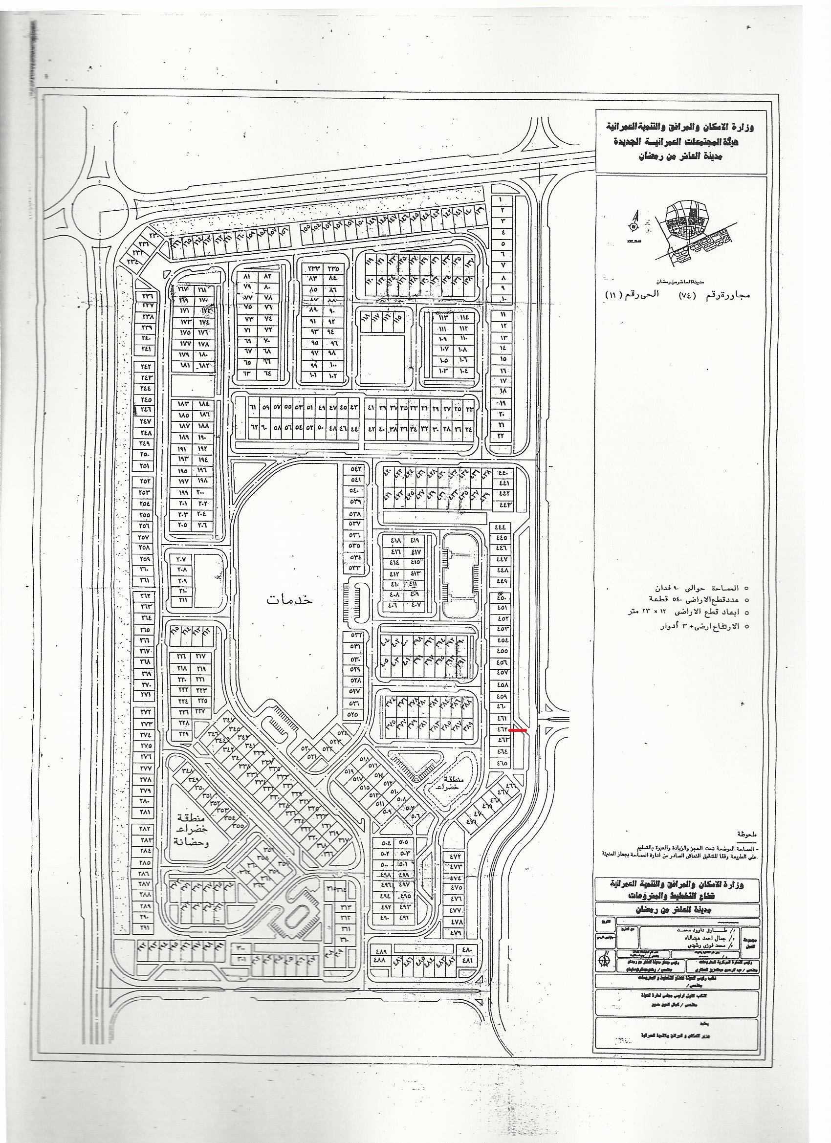 مدينة العاشر من رمضان - الحى 11 - المجاورة 74 - قطعة رقم 462