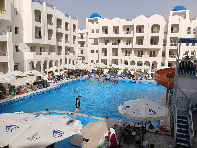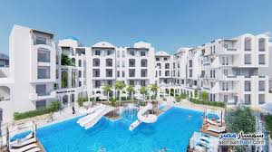 شاليه للبيع 60م منتجع سانتورينى الكيلو 82دور ارضي بحديقة التسليم فورى يطل على الاكو