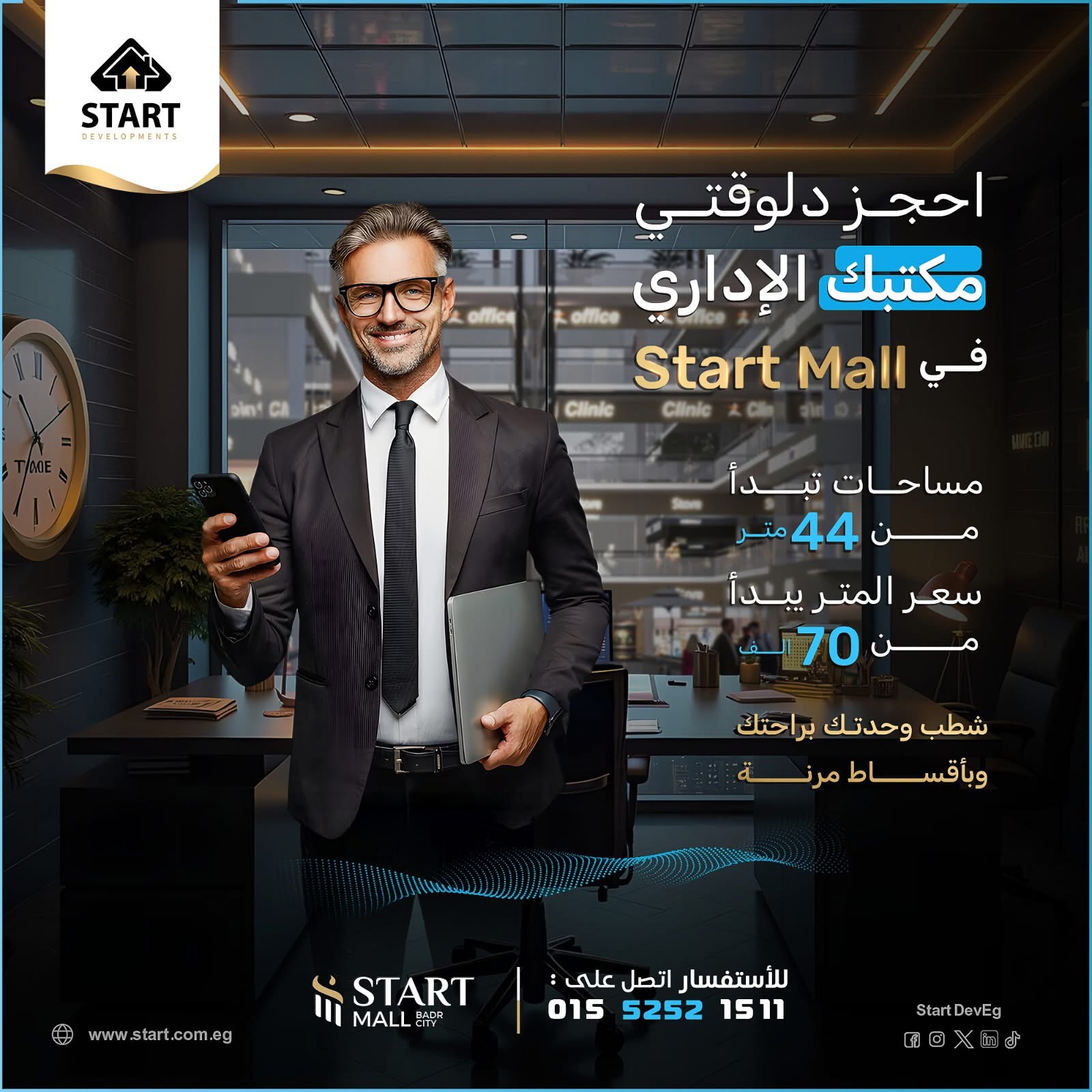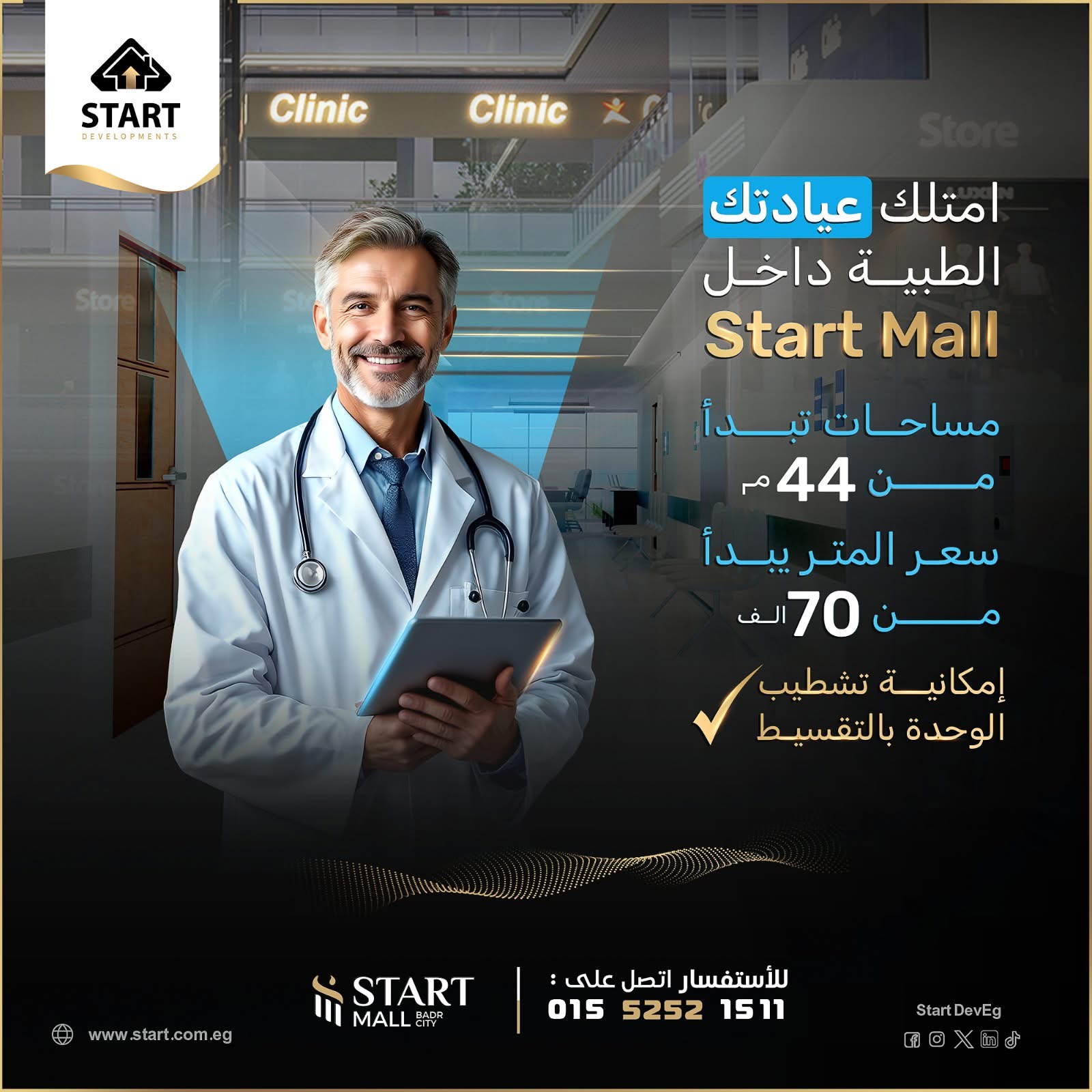 شركة Start العقارية تطرح عدد من الوحدات التجارية والطبية والإدارية في منطقة الخدمات المركزية والجامعة المصرية الروسيه وجهاز مدينة بدر .. اقل سعر محل بالدور الاول ♦️مساحة المحل: 23م مقدم: 25٪* بقيمة : 546.250 توتال سعر المحل : 2.185.000 قسط علي 4 سنين اقل سعر عيادة طبية بالدور الثاني عيادة طبية ♦️مساحة 44 م مقدم 25٪* بقيمة : 770.000 توتال سعر العيادة : 3.080.000 للتواصل 01091788130