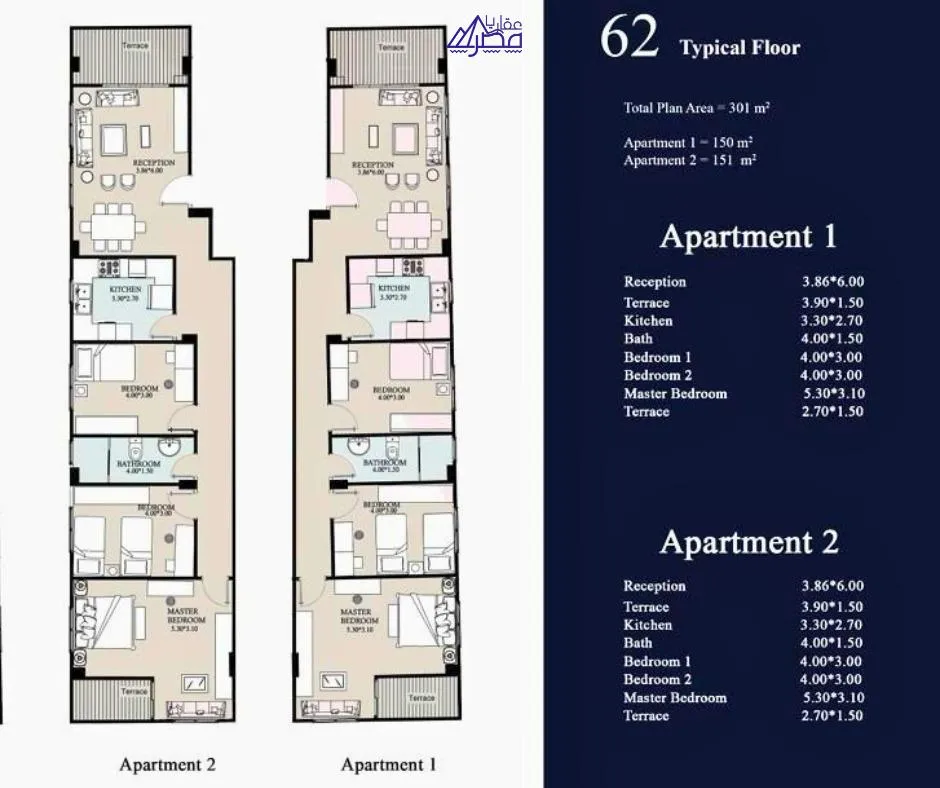 +1 شقة سكنية 150م للبيع بالتقسيط بمدينه دمياط الجديده دمياط