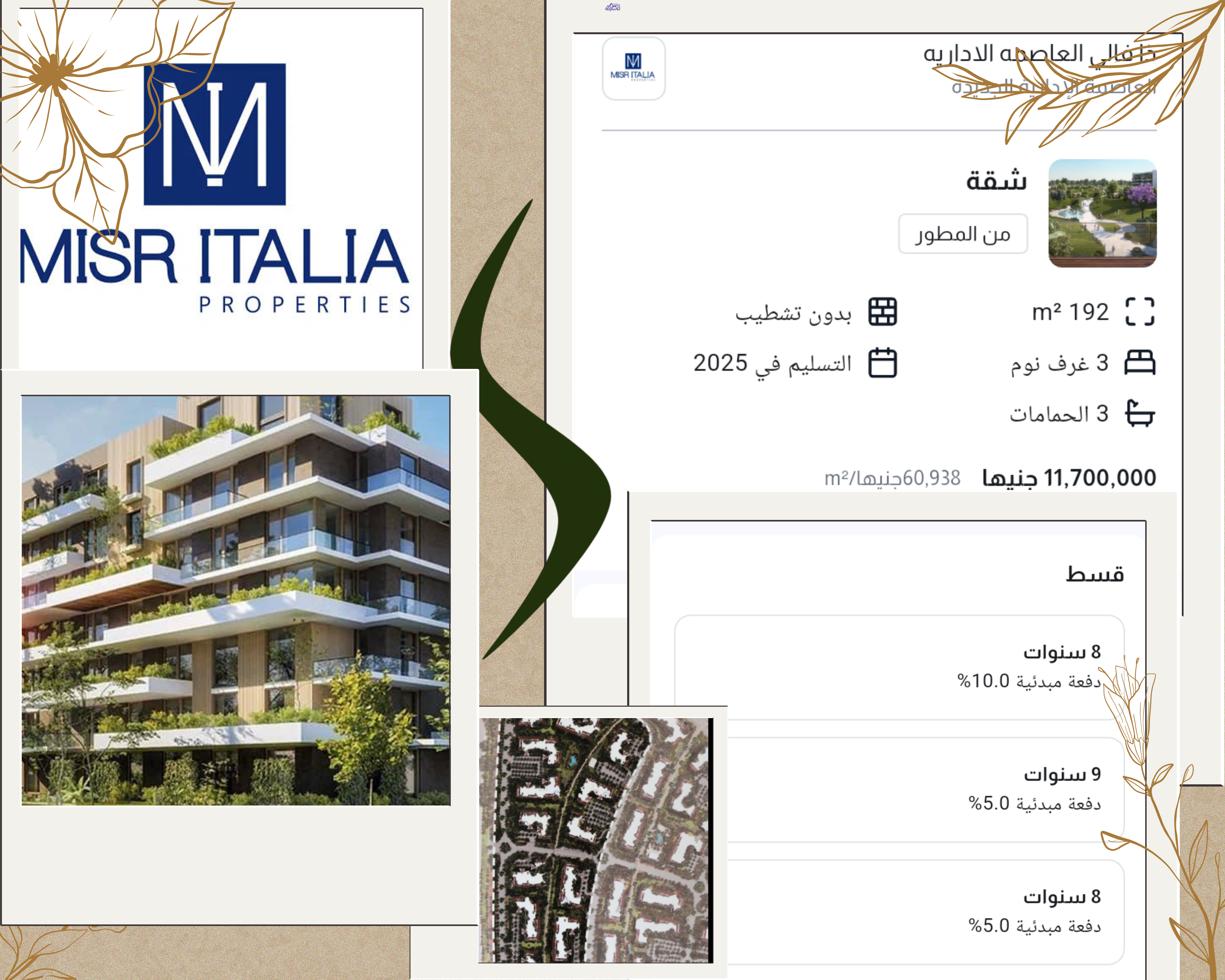 شقة سكنية 192م للبيع بالتقسيط بالعاصمة الادارية الجديدة القاهرة