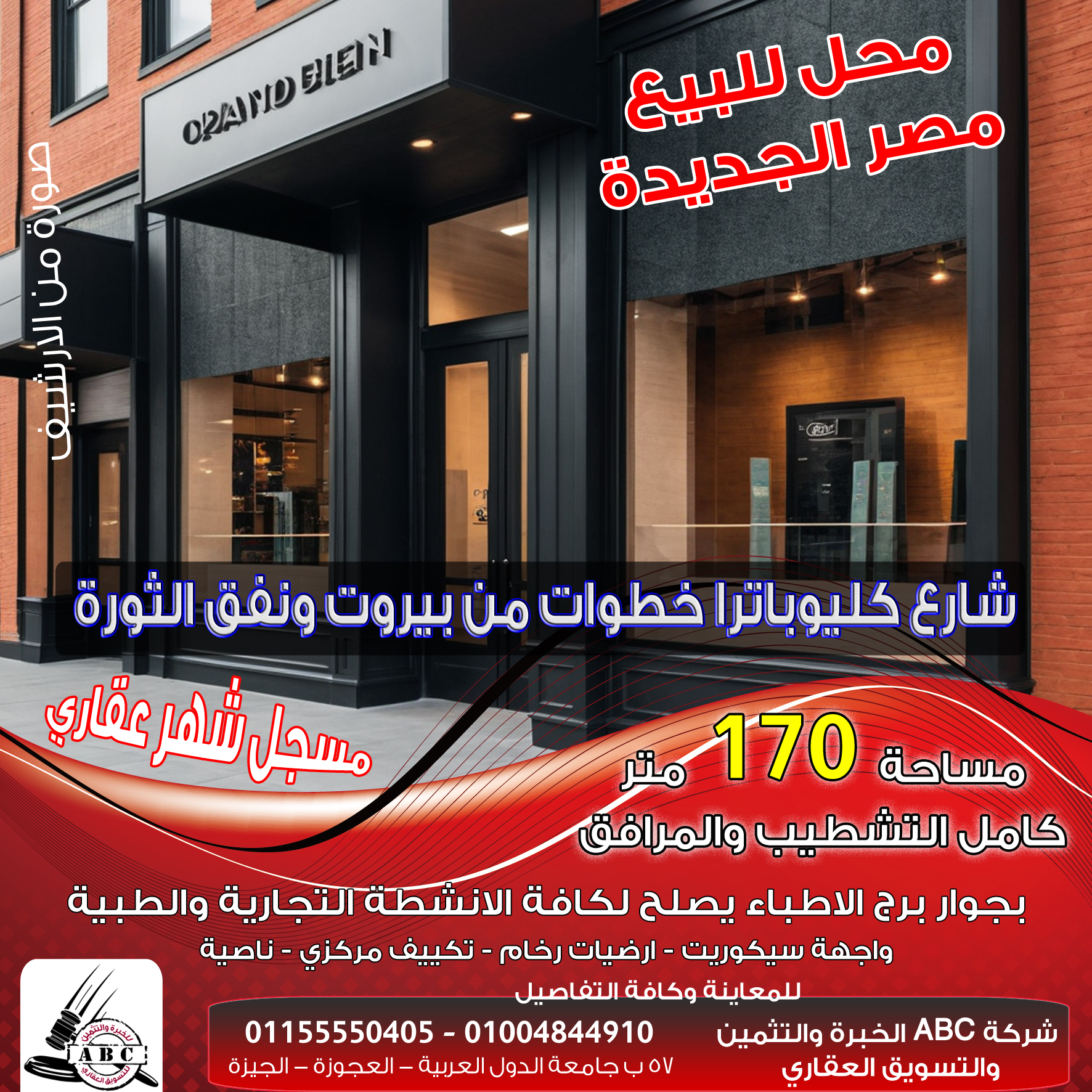 محلات تجاري 170م للبيع كاش بمصر الجديدة القاهرة