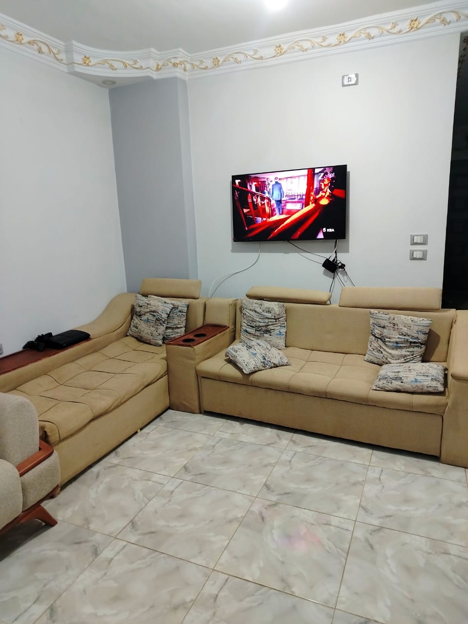 منطقة (ل) قريبه جدا من شارع الجيش البوابه الرابعه 2 غرقة نوم+ 2 حمام تشطيب سوبر لوكس بها عداد كهرباء و عداد غاز خلفى مطله على شارع واسع اسانسير تصلح لعروسين