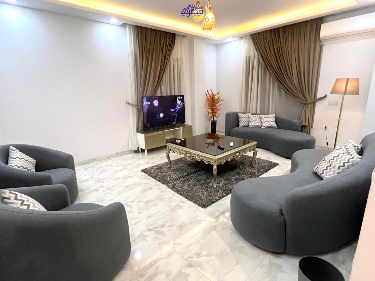 شقه مكونه من ٣ غرف غرفه ماستر و٢ حمام ورسبشن كبير ومطبخ مفروشه فرش فندقي شامله جميع الخدمات