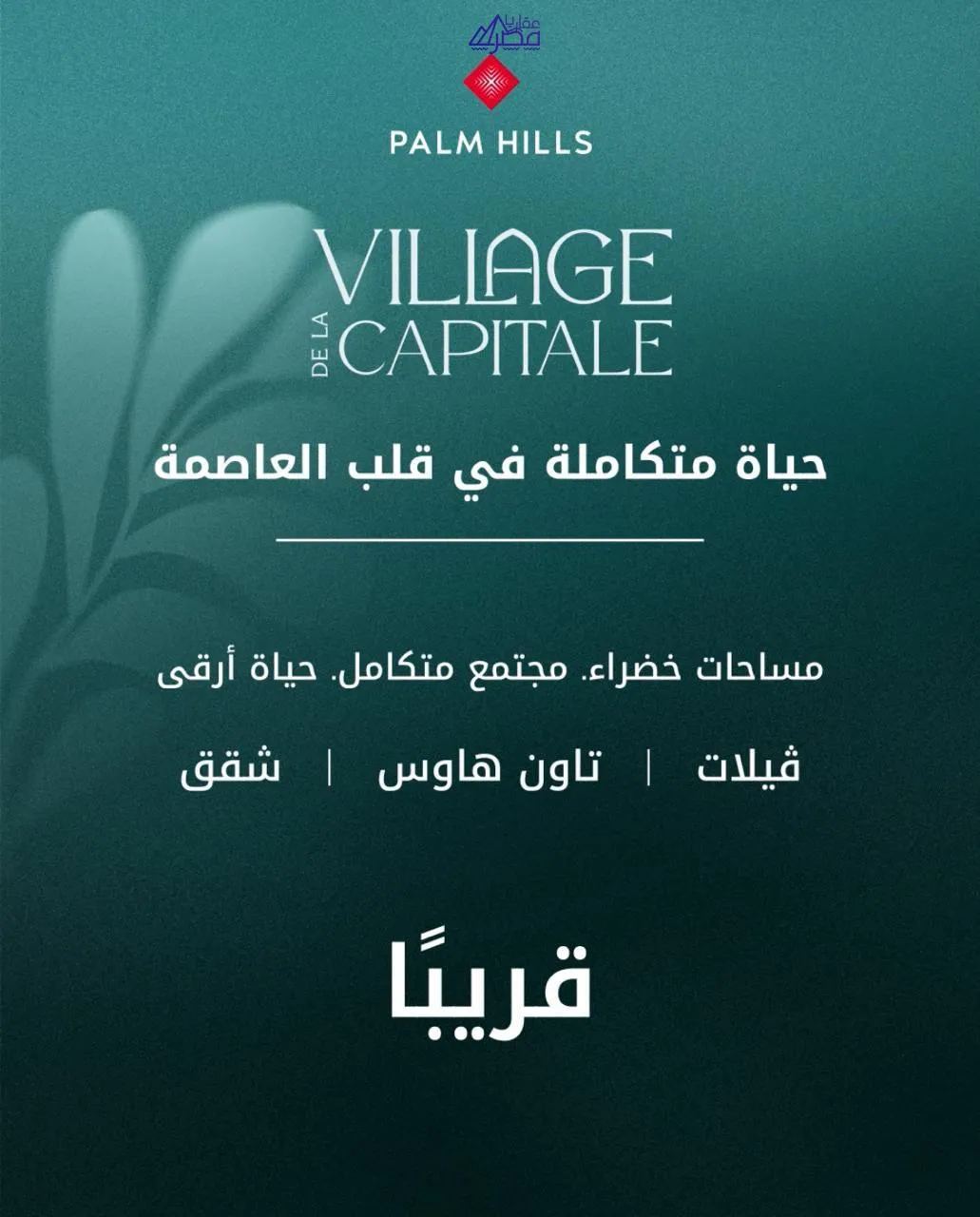 بالم هيلز تطلق «Village de la Capitale» أول مجتمع سكني لها في العاصمة الإدارية الجديدة. تصميمات معمارية عصرية تضم فلل وتاون هاوس وشقق تحيط بها المساحات الخضراء والمسطحات المائية، لتجربة سكنية راقية تنبض بالحياة والاتصال. لتفاصيل اكتر 01021556196 والواتس اب https://wa.me/201021556196